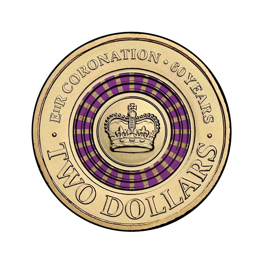The 2013 coloured $2 coin was issued by the Royal Australian Mint to commemorate the 60th anniversary of the Coronation of Queen Elizabeth II.